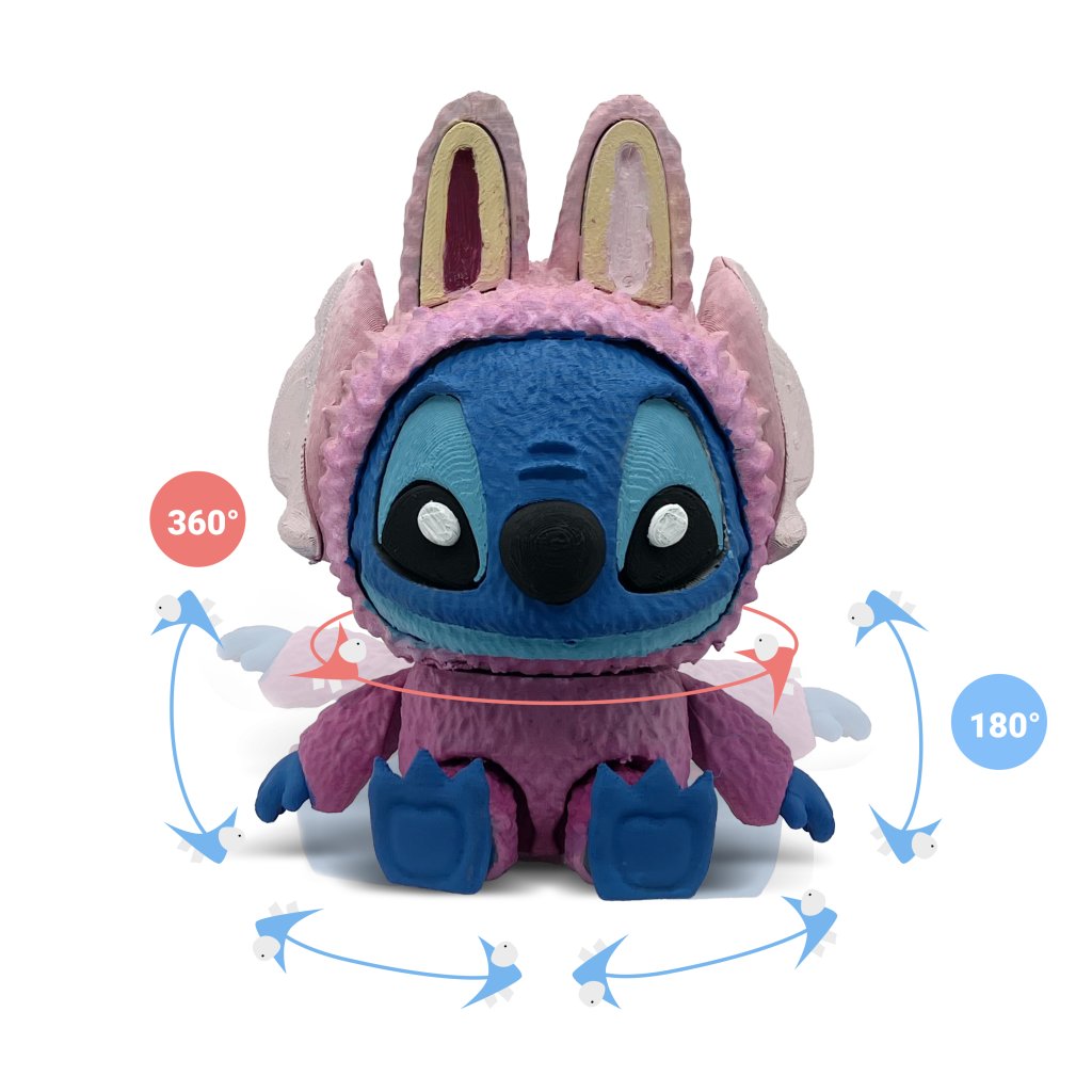 Stitch převlečený za labubu v sadě
